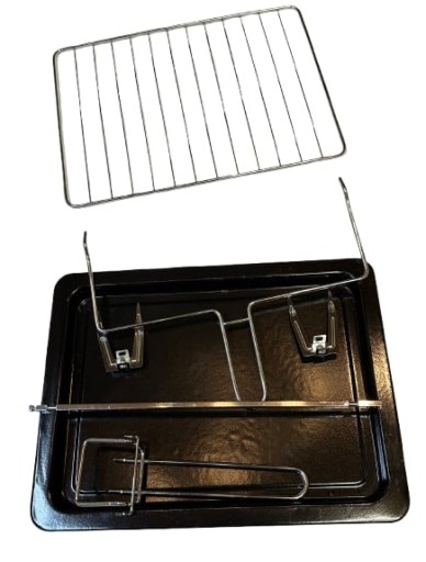- W zestawie rożen, głęboka, emaliowana blacha do pieczenia, ruszt do grillowania, 2 x pomoce do wyjmowania