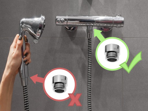 Regulator należy wkręcić pomiędzy baterię prysznicową i wąż. Nie należy montować go przy słuchawce prysznicowej. Produkt pasuje do wszystkich baterii prysznicowych i wannowych (standard ½ cala).
