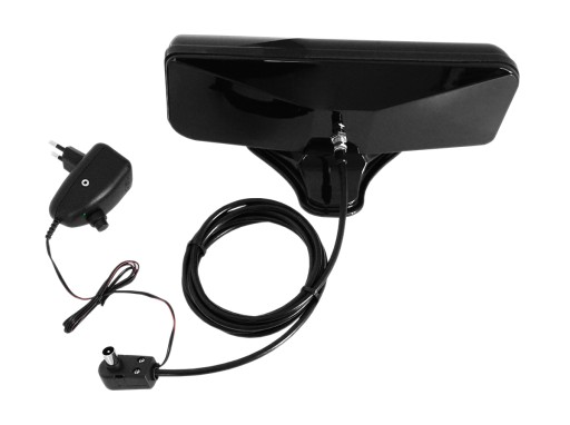NAJMOCNIEJSZA POKOJOWA POLSKA ANTENA DVB-T DVB-T2 +45 dBi ALPHA BLACK PREMIUM ZE WZMACNIACZEM I ZASILACZEM REGULOWANYM ORAZ 2m GOTOWYM DO PODŁĄCZENIA KABLEM