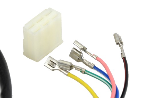 - podłączany za pomocą pięciu kabli, zakończonych konektorami żeńskimi, (w zestawie kostka połączeniowa)