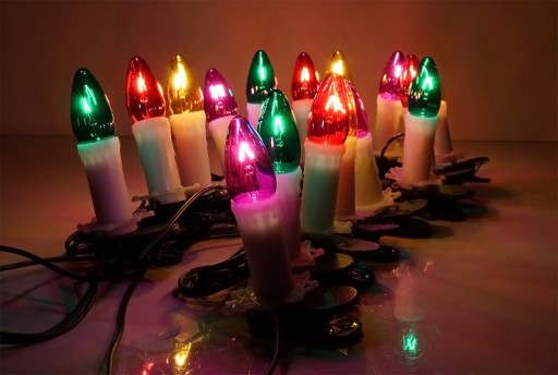 Polskie, klasyczne, tradycyjne lampki choinkowe o kształcie świeczki. Każdemu przypomną święta pachnące pomarańczami i radosny czas zakładowych zabaw i paczek dla najmłodszych