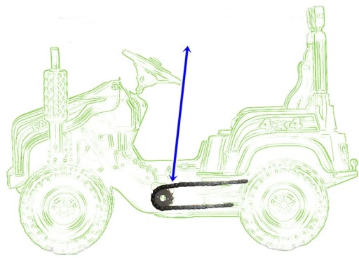- Posiada tylni napęd łańcuchowy – jest napędzany siłą mięśni malucha, posiada ruchomy układ kierowniczy