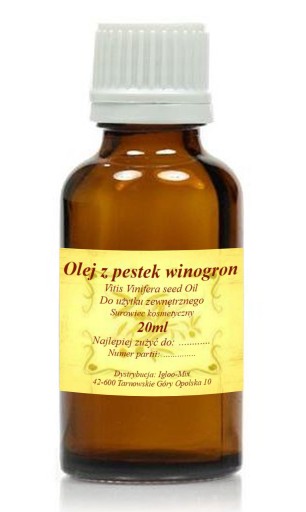 Olej z pestek winogron 20ml tłoczony na zimno bez dodatków i aromatów,