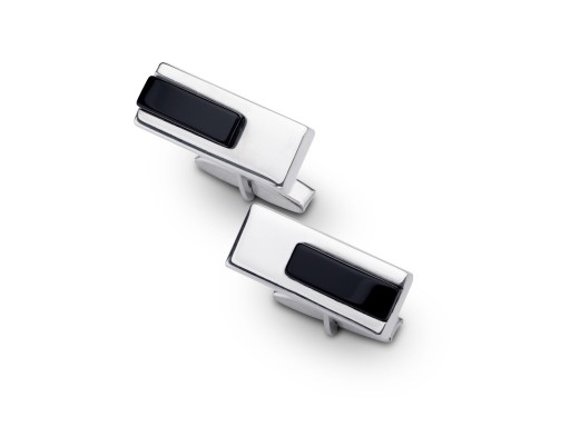 Eleganckie spinki męskie do mankietów koszuli. Wykonane z polerowanego srebra próby 925 zdobione wstawkami z onyksu. Bardzo solidna, jubilerska robota. Powierzchnia spinek idealnie nadaje się do grawerowania inicjałów.