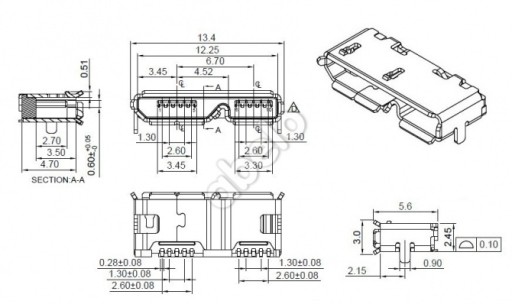 Gniazdo montażowe micro USB 3.0 stosowane w wielu urządzeniach typu netbook, tablet, MP4, dysk zewnętrzny.