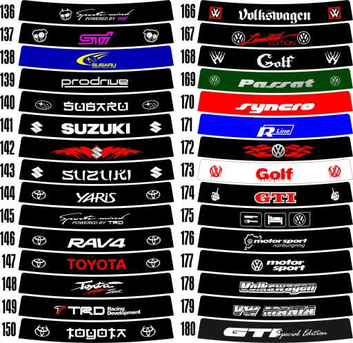 Oferta dotyczy pasa na przednią szybę samochodu (nieprzezroczysty, naklejany od zewnątrz), o wymiarach wykroju 121 x 17 cm (na życzenie mogą być inne wymiary), w dowolnym kolorze oraz z dowolną grafiką: wystarczy, że podasz nam kolor oraz treść, a my przed wykonaniem wyślemy Ci jeden lub kilka wariantów do wyboru. Posiadamy w swoich zbiorach tysiące logotypów firm motoryzacyjnych, klipartów itp., więc z pewnością dla każdego coś znajdziemy. Na zamówienie możemy również opracować Twój indywidualny wzór graficzny!