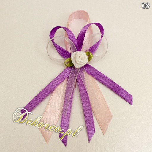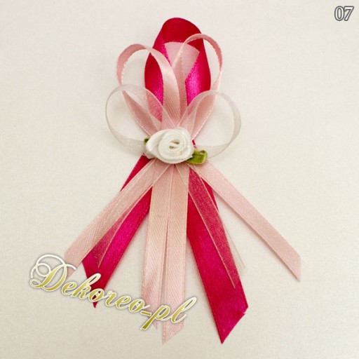 Bazą kotyliona jest tasiemka atłasowa o szerokości 1,2 cm oraz tasiemka atłasowa o szerokości 0,6 cm z możliwością wybrania koloru przez Państwa.