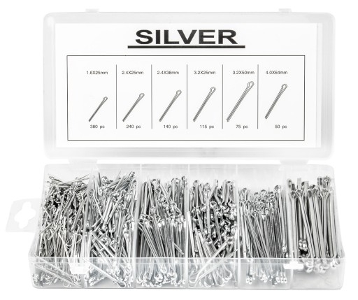 - Komplet zawleczek wysokiej jakości wykonania. Znajdują zastosowanie w warsztatach, serwisach.