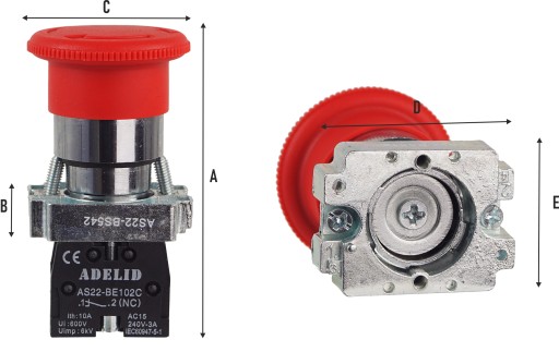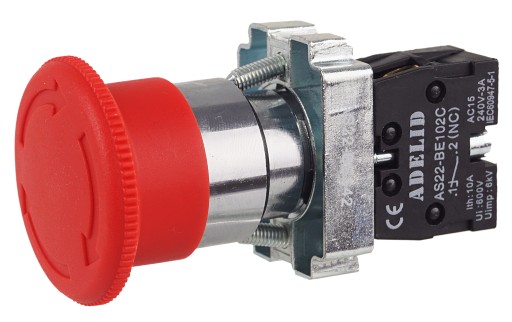 Oryginalny przycisk dłoniowy, bezpieczeństwa, grzybek czerwony marki ADELID.