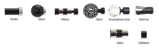 Poniżej kolorystyka karniszy oraz modele zakończeń do wyboru