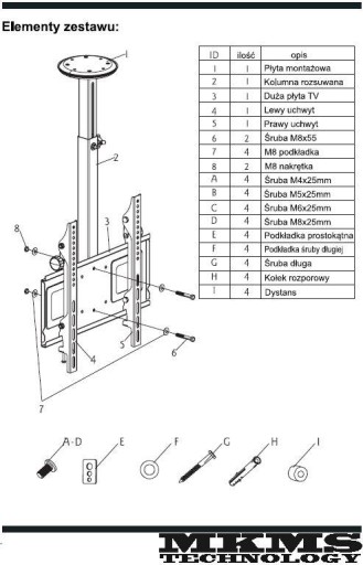 Uchwyt został wyposaży w akcesoria montażowe oraz schematy i instrukcje montażu w języku polskim. W zestawie komplet śrub, podkładek i kołków montażowych.