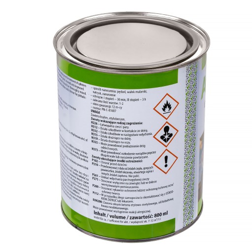 Emalia ftalowa odporna na uderzenia i zadrapania, charakteryzuje się wysokim połyskiem, doskonałą przyczepnością do podłoża, elastycznością, odpornością na działanie czynników atmosferycznych oraz krótkim czasem schnięcia. Sucha w dotyku po 30 minutach - całkowity czas schnięcia 3h. Bezołowiowa.