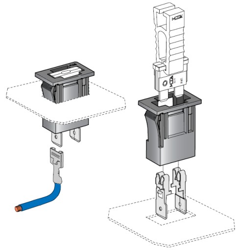 Dzięki swojej konstrukcji idealnie nadaje się do montażu we wszelkiego rodzaju obudowach i skrzynkach gdzie wymagany jest szybki i łatwy dostęp do bezpiecznika.