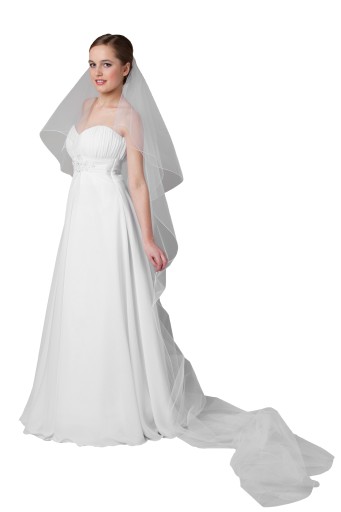 Mamy do zaoferowania Państwu piękny welon ślubny wykonany z białego lub ecru tiulu obszytego mereżką. Welon jest dwuwarstwowy o wymiarach 70/300 cm. Upięty jest na bezbarwnym grzebyku, który ułatwia wpięcie go we włosy.