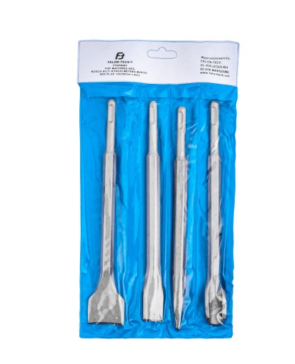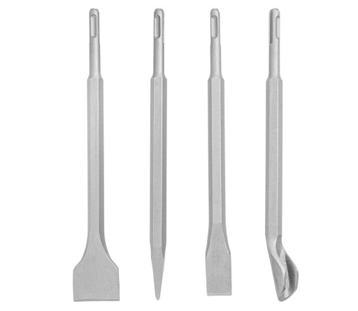 Wysokiej jakości 4 elementowy zestaw dłut do betonu. Dłuta pasują do każdego urządzenia wyposażonego w uchwyt SDS PLUS.