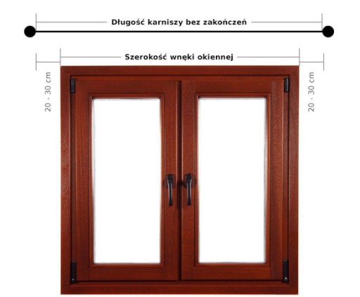 Aby prawidłowo dopasować karnisz do naszego domu, powinien on być dłuższy od wnęki okiennej o około 40 - 60 cm nie wliczając zakończeń.