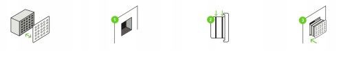 - Przygotuj otwór wentylacyjny wewnątrz budynku pod rozmiar: 14x14 cm.