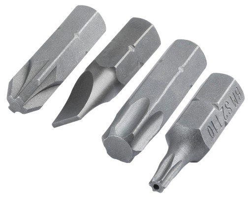 Zawartość tej niepozornej walizki to zestaw bitów do wkrętaków i wkrętarek firmy Mannesmann (Niemcy). Bity pasują do większości stosowanych obecnie śrub. W zestawie znajdziesz groty płaskie, krzyżakowe PH i PZ, imbusowe, torx i torx z zabezpieczeniem.