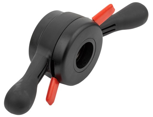 Konstrukcja uchwytu szybkomocującego pozwala na łatwy montaż nakrętki na trzpieniu wyważarki. Popularna konstrukcja motylka z dwoma wkładkami gwintowanymi i blokadą sprężynową zwalnianą jednym palcem.