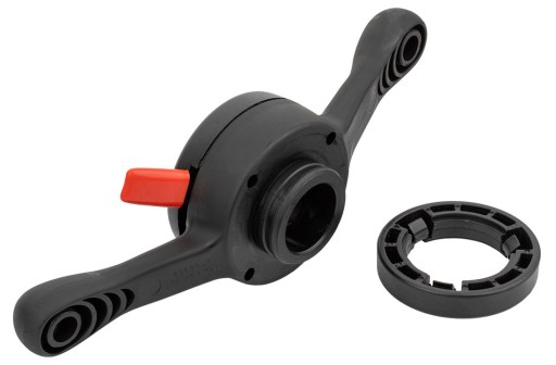 Konstrukcja uchwytu szybkomocującego pozwala na łatwy montaż nakrętki na trzpieniu wyważarki. Popularna konstrukcja motylka z dwoma wkładkami gwintowanymi i blokadą sprężynową zwalnianą jednym palcem.