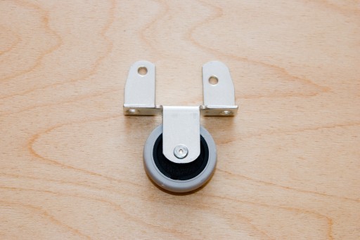 Opis: rolka (felga) wykonana jest z czarnego tworzywa sztucznego a jej zewnętrzna część tzw. oponka z gumy w kolorze szarym, dzięki temu łatwo i cicho toczy się po powierzchni podłogi nie rysując jej. Szkielet wykonany jest z blachy stalowej ocynkowanej. Rolka znajduje zastosowanie w dużych szufladach, łóżkach, boksach itp. Montaż (wymiana) kółka jest bardzo prosta, gdyż polega na przykręceniu dwóch wkrętów lub przynitowaniu.