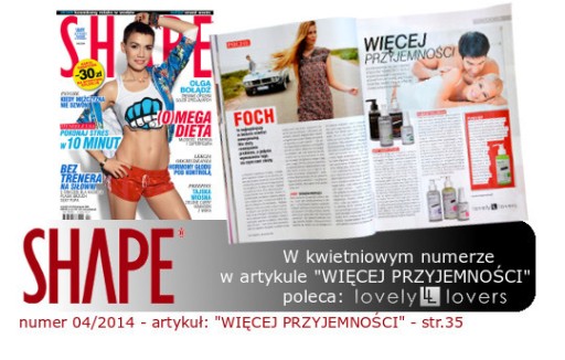 LibidoUP spray jest jednym z kilku preparatów intymnych marki LOVELY LOVERS polecanych w kwietniowym wydaniu magazynu SHAPE (04/2014) w artykule "WIĘCEJ PRZYJEMNOŚCI". Kliknij w "Poradnik.pdf" w "Dodatkowe informacje" poniżej opisu.