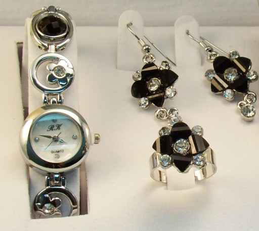 ZESTAW DAMSKIEJ BIŻUTERII - Black Flower