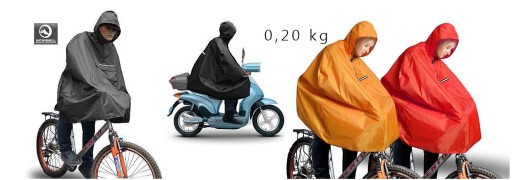 Kaptur jest regulowany gumo-sznurkiem zakończonym stoperkiem i plastikową końcówką. Peleryna zapinana jest na zamek. Po wewnętrznej stronie znajdują się dwa elastyczne uchwyty na dłonie. Z przodu posiada - zapinaną na rzepy – kieszonkę, która służy także jako opakowanie/woreczek. Z tyłu i z przodu znajdują się paski odblaskowe – poprawiające bezpieczeństwo na drodze.