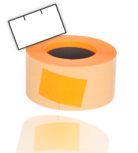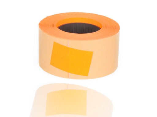 Rolka taśmy do metkownicy dwurzędowej w kolorze pomarańczowym jest przystosowana do większości metkownic dwurzędowych działających na rynku, może być również używana do ręcznego naklejania cen na produktach.