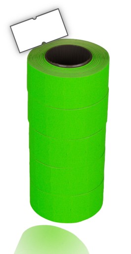 Taśma do metkownicy jednorzędowej w kolorze zielonym jest przystosowana do większości metkownic jednorzędowych działających na rynku, może być również używana do ręcznego naklejania cen na produktach.