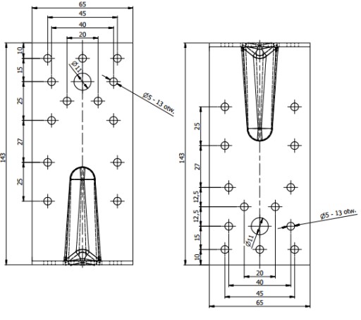 - ilość otworów -26 otworów ø5mm, 2 otwory ø11mm