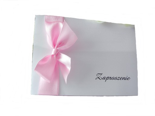 Przedmiotem aukcji jest przepiękne zaproszenie wykonane z papieru wysokiej jakości (246-250g/m2) ozdobione starannie zawiązaną atłasową kokardą.