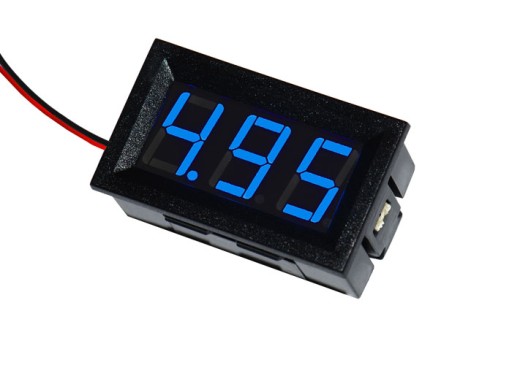 Woltomierz panelowy, kolor niebieski, duży i czytelny do zamontowania w obudowie. Zakres pomiarowy 4,5-30V DC.