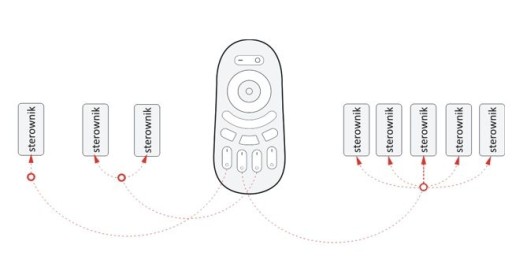Można przyłączać wiele stref z oświetleniem do danej strefy w pilocie. Dzięki temu jest się elastycznym i można tworzyć wiele kombinacji.