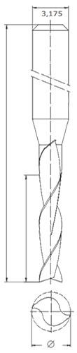 Frez VHM z węglika, 2-piórowy (dwa ostrza) czoło "rybi ogon" trzpień 3,175 mm (1/8")