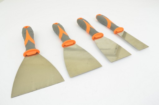 - Profesjonalne szpachelki nierdzewne ze specjalną rękojeścią podgumowaną w rozmiarze: 40mm, 60mm, 80mm, 100mm,