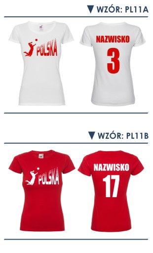 Koszulki kibica krój damski z dowolnym nazwiskiem, imieniem, ksywą i numerem - t-shirt na mecz reprezentacji polski.