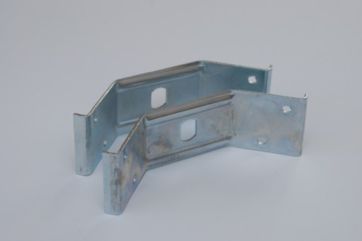 Opis: bardzo sztywny łącznik do stolików i stołów. Kątownik stosowany jest w miejscach gdzie nie mieści się tradycyjny kątownik do drewna. Łącznik wykorzystywany jest do tworzenia bardzo mocnych i sztywnych połączeń. Wymiary dwa ramiona L=40 mm/45° i odcinek środkowy L=55 mm. Całkowita długość 128 mm, szerokość 39 mm. Pokrycie cynk z białą pasywacją.
