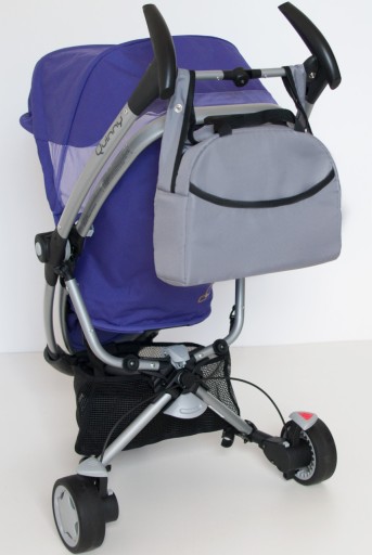 Torbę można trzymać za uchwyty, nosić na ramieniu oraz zawiesić na rączkach wózka. Posiada napy umożliwiające łatwy montaż na rączkach wózka.