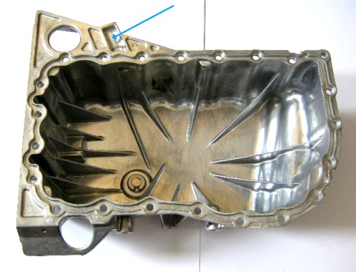 Miska posiada otwór na czujnik poziomu oleju w miejscu oznaczonym na zdjęciu strzałką.