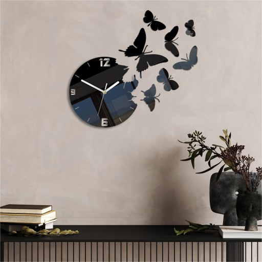 KWARCOWY ZEGAR ŚCIENNY - MOTYLE NIESAMOWITY EFEKT 7 MOTYLI