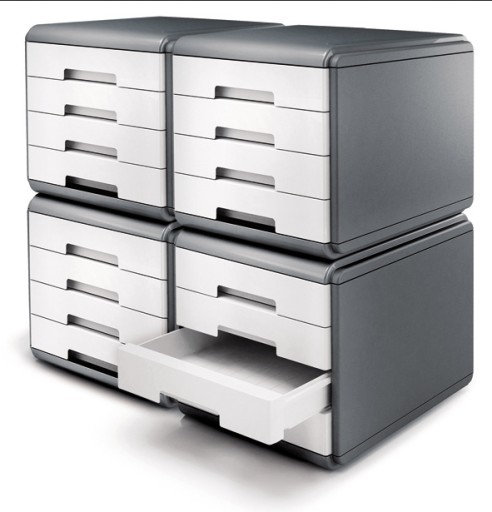 Na Twoim biurku wciąż piętrzą się duże ilości dokumentów? Masz dość ciągle powracającego bałaganu w papierach? Nie wiesz, w jaki sposób szybko posegregować dokumenty? Prezentujemy praktyczny organizer na dokumenty włoskiej marki ARDA. Ten funkcjonalny produkt o stonowanej – szaro-białej kolorystyce idealnie sprawdzi się nie tylko w miejscu pracy, ale także w warunkach domowych. Organizer ARDA wykonany został z trwałego, utwardzanego tworzywa, dzięki czemu wyróżnia się wytrzymałością i odpornością na uszkodzenia. Podzielony został na cztery pojemne szuflady, w których bez problemu zmieści się standardowy format A4, na którym drukowanych jest większość dokumentów. Każda z nich posiada specjalny system cichego wysuwania i blokowania. Jeśli nie dysponujesz dużą ilością miejsca, ciekawym rozwiązaniem jest możliwość piętrowania organizerów marki ARDA, tzn. ustawiania ich jeden na drugim, co zmniejsza ilość wykorzystywanej przestrzeni.