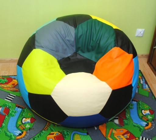 Przedmiotem aukcji jest piłka pufa "kolorowe szaleństwo" o pojemności 450L. Wersję kolorystyczną należy wybrać przy zakupie z dostępnych modeli z wzornika, bądź skomponować własną. Instrukcje dot. dobierania kolorów opisujemy w tekście poniżej. Wymiary pufy to 100cm szerokości, 100cm głębokości oraz 60cm wysokości. Należy pamiętać, że pufa jest meblem bezszkieletowym, dlatego jej wymiary mogą się zmieniać w zależności od wagi osoby użytkującej oraz ułożenia pufy. Pufa jest standardowo wypełniona mieszanką sprężystych materiałów do produkcji mebli, które zapewniają trwałość i komfort użytkowania. Materiał z którego została wykonana - ekoskóra dollaro, posiada atest PZH.