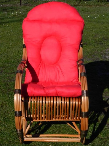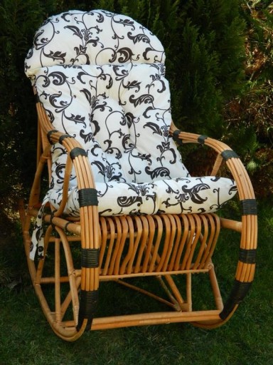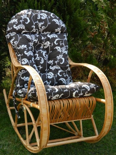 Poduszka na fotel bujany 12 rożnych kolorów - poduszka pasuje na wszystkie rodzaje foteli bujanych dużych. Zdjęcia robione są na fotelu bujany w celu przedstawienia wyglądu całej poduszki. Poduszka zakładana jest od góry fotela oraz posiada paski do wiązania. W sprzedaży również poduszki w kolorach dostępnych na innych aukcja z fotelami bujanymi.