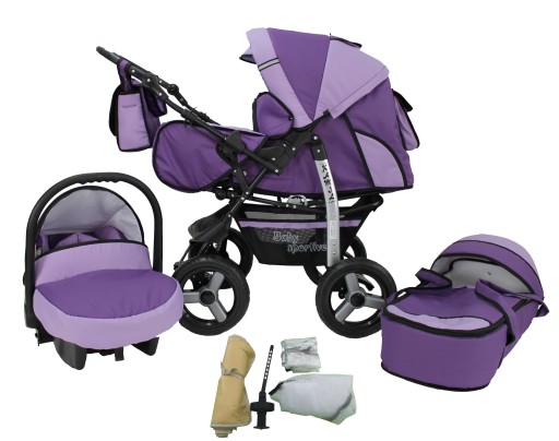 z przekładaną rączką do prowadzenia , fotelikiem samochodowym na kołach piankowych
