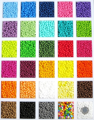 OFERUJEMY BARWIONY GRANULAT STYROPIANOWY KULECZKI FI.2-5 MM DOSKONAŁY WYPEŁNIACZ OZDOBNY.
