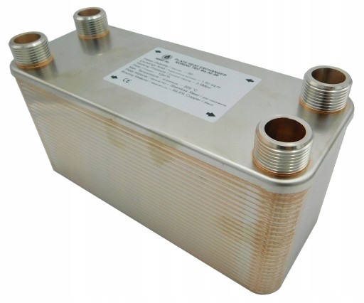 Przy podłączaniu zwróć uwagę na strzałki na tabliczce znamionowej, ukazujące prawidłowy kierunek przepływów. Wymiennik podłączamy zawsze przeciwprądowo - dla uzyskania maksymalnej wydajności.