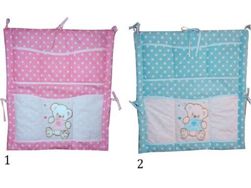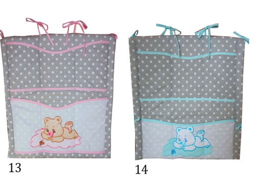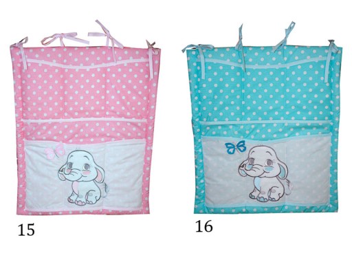 PRAKTYCZNE PRZYBORNIKI DO ŁÓŻECZKA Z SZEŚCIOMA KIESZONKAMI i HAFTOWANĄ APLIKACJĄ MISIA LUB SŁONIKA