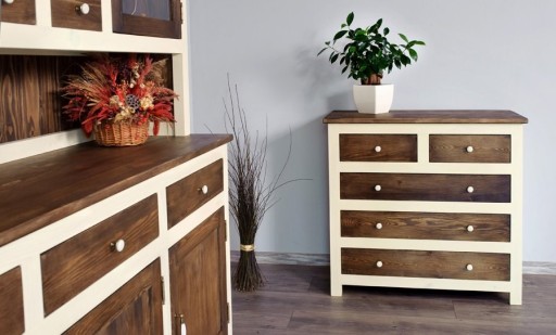 - Szafka drewniana rustykalna wykonana został z wysokogatunkowego litego drewna sosnowego. Następnie jego powierzchnię pokryto naturalnym woskiem pszczelim.