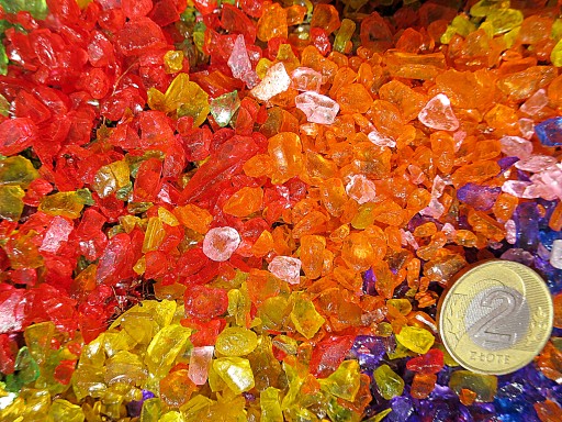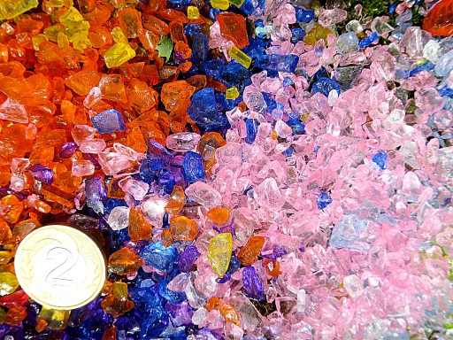 BARWIONY ZEWNĘTRZNIE GRANULAT SZKLANY O ŚREDNICY 2-6 mm. (W środku jest bezbarwny)